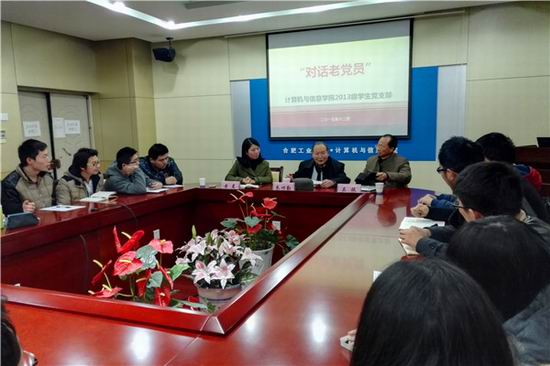 开展“对话老党员”主题座谈会。校关工委朱功勤教授和校党建组织员吴挺老师应邀参加。屯溪路校区全体学生党员参加了本次座谈会。