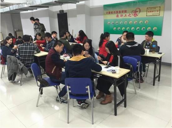 和数学学院联合举办的“益智杯”棋牌争霸赛活动在屯溪路校区逸夫楼活动室如期举行。活动以促进研究生之间的团结协作,增加成员之间的友谊为目的,受到同学们的热烈欢迎,取得圆满成功。