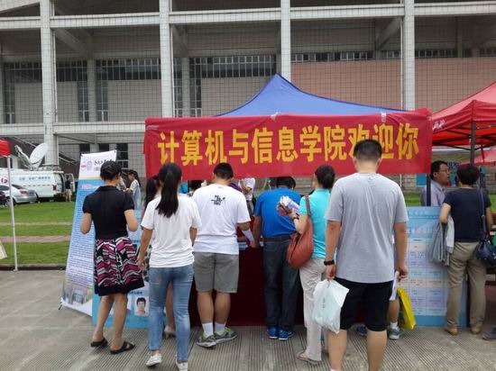 6月25日上午,“2015年部委高校在皖招生咨询会”在我校翡翠湖校区东操场隆重举行。为加大今年的高招宣传力度,切实提高p站 生源质量,学院各系所任课老师和辅导员亲临高招咨询会现场,为广大考生及其家长提供咨询。