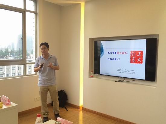 在启动仪式上,周清峰教授首先简单介绍“工大创客坊”相关概念及“创客”的发展历史,着重突出了“创客”概念在中国的发展及当今国家政策的大力支持,提出要在工大建立安徽高校中有特色有影响力的“创客空间”,为广大工大学子提供一个创新思维交流、创意实现且转化的平台。郑利平副院长指出,“工大创客坊”的建立符合新形势下时代发展的需要,为广大工大学子提供了一个非常好的学习交流的平台,学院将予以高度的支持。郑召丽副书记指出,“工大创客坊”和学校大量开展的创新创业大赛宗旨相符合,“创客”平台的建立有助于学生创业梦想的成熟并实现。吴文涛副院长认为,“工大创客坊”的成立,使工大在培养学生创新创业,将创新思维最终转化成实际成果上在安徽高校中占据了制高点,为工大学生思维创新,动手实践提供了一个广阔的空间。李丽鹏科长强调了创新思维的重要性,并指出以往学校在创新、创业项目上对于成果积累所存在的不足,认为“创客坊”可以有效的弥补这一缺陷,使学生拥有更加丰富的实践资源。