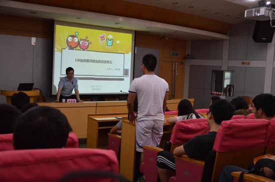 本次活动过程中杨经理为同学们详细地讲述了未来的潜力行业,并对如何获取招聘信息,如何选择适合自己行业,如何制作简历等同学们关心的问题一一耐心解答,就面试环节中应该注意的细节和就业前应做好的准备工作等相关知识与同学们在现场进行交流沟通,最后解答了同学们有关就业方面的问题,本次讲座在同学们的掌声中圆满结束。