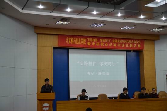 “E路相伴,你我同行”生涯规划系列活动启动仪式暨考研就业经验交流主题活动在学术会议中心一楼报告厅召开。院相关老师、2011级优秀学生代表以及2012级全体同学出席了本次活动。