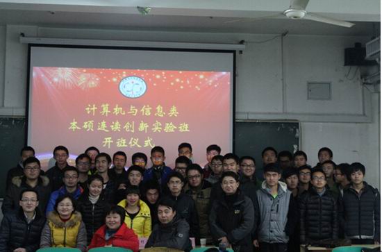 2015年1月14日晚上7点,2014级“英才计划”计算机与信息类本硕连读创新实验班在翡翠湖校区10教202举行了开班仪式。参加本次开班仪式的领导有p站