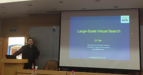 邀请,美国德州大学圣安东尼奥分校田奇教授访问我校并在学术会议中心作了题为“大规模视觉搜索”的学术报告。报告会由杨学志副院长主持,来自计算机、通信与电子系的近百位师生踊跃参加了此次报告会。