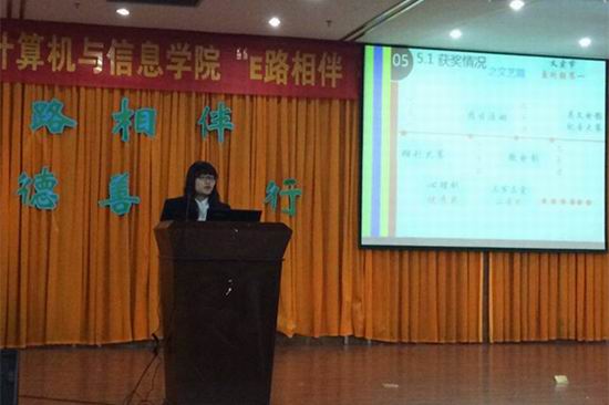 仪式结束后,“班级风采视频”的展播拉开了优秀班级评比的序幕。优秀班级评比分为材料自评和现场答辩两个部分。材料自评依据《p站