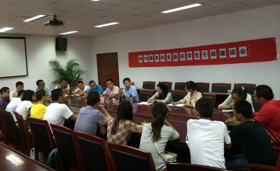 为促进学生干部更有效的管理工作,增进干部间的互相了解, 9月24日下午17:00在翡翠湖校区综合楼管委会第一会议室召开了2014级本科生学生干部座谈会。p站