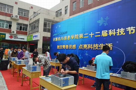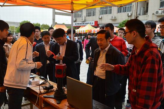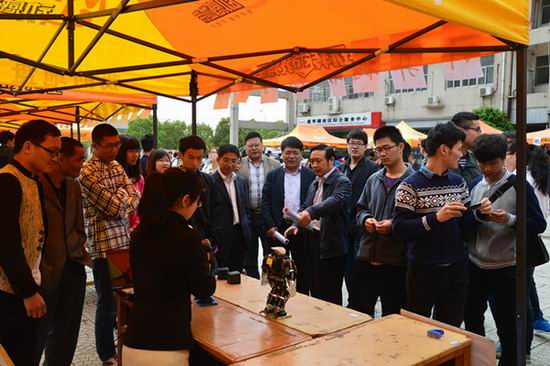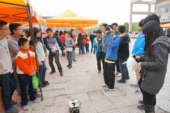 分布式控制实验室、计算机应用技术实验室等6个实验室的30余项学生自制高科技展品纷纷亮相科技节开幕式,有飞思卡尔智能小车,机器人舞蹈展,意念控制小车,智能追溯系统,航模等展品,有移动4G,火狐电脑小插件,体感游戏机等现场体验品,还有装机大赛,混乱代码大赛等项目比拼。