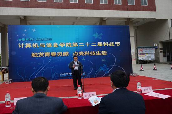 本次科技节在“e路相伴,科技同行”的大背景下,以“触发青春灵感,点亮科技生活”为主题,从4月13日开幕式至5月31日闭幕式,历时一个半月,在此期间,将举办囊括参观体验类、比赛竞技类、科技服务类共计11余项活动,举办科技讲座共计10余场,全面提升广大同学的科技素养与动手实践能力。开幕式上,合肥市科协主席金维平致辞,在充分肯定了科技节的内涵的基础上,鼓励同学们积极参与到科技创新、科技实践当中去,努力提升自己的科学素养与创新能力,并预祝本次科技节取得圆满成功。随后,校团委书记陈文恩指出:自主创新能力成为国家竞争力的核心,培养学生科技创新素质是学校人才培养目标的重要内容,我们要认真总结经验,不断开拓创新,坚持不懈地办好一年一度的大学生科技文化节。希望同学们能够借助科技节这个平台,善于思考、勇于创新、不断进取,更好地投入到专业学习和科技创新工作中,促进资源整合,展示先进科技,推动科技创新。学院科技与创新协会主席吴晶晶详细介绍了此次科技节的相关情况。最后,嘉宾寄语科技节并合影留念。