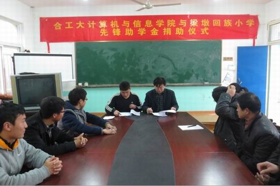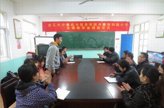 2012级国家奖学金获得者王晨光同学与学院第二届义卖节活动盈利额,用于奖励梁墩回族小学各年级优秀的家庭贫困学生,捐助仪式上,梁墩回族小学校长石立银对p站