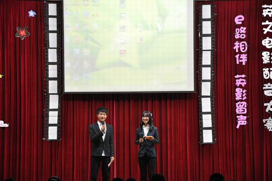 此次大赛由2013级九个班级通过遴选优秀口语代表组队参与比赛,比赛由电影现场配音和PPT讲解展示两个部分组成,从口语表达、现场氛围、展示内容、影片难度等方面对参赛团队进行综合考评,大赛组委会为参赛选手专门制作了录音棚。在比赛过程中,参赛队伍结合自身优势精心选取了各种情景片段,有奇幻片、动漫片、科幻片,选手们以流畅的口语表达、绘声绘色的演绎以及富有创意的全英文介绍,博得了在场观众的阵阵掌声。大赛组委会编辑制作的幽默搞笑的方言配音视频,充分展示了中国语言文化的博大精深。经过激烈的角逐,电子信息工程13-1班的以配音作品《怪物史莱克》荣膺此次大赛一等奖。