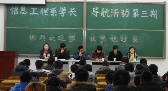 党委安排,学院研究生办公室老师的精心组织和准备,由学院精心挑选的三个年级45名优秀研究生,于2013年12月21日前往宣城校区信息工程系开展了第二期 “学长领航” 活动,受到了信息工程系老师和同学们的热烈欢迎。