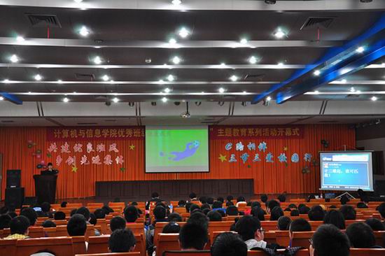 班级工作考核体系评分细则》,分别从班级“制度建设、班风建设、学风建设、特色活动、风采展示”五个方面量化考核班级的日常工作。现场答辩中,各班结合班级实际情况,围绕班级主题,以丰富多彩的形式展示班级的特色与文化。此外,本次评选开设微博墙,促进各班有效互动。经过层层遴选,计算机科学与技术12-3班荣获此次评选一等奖。