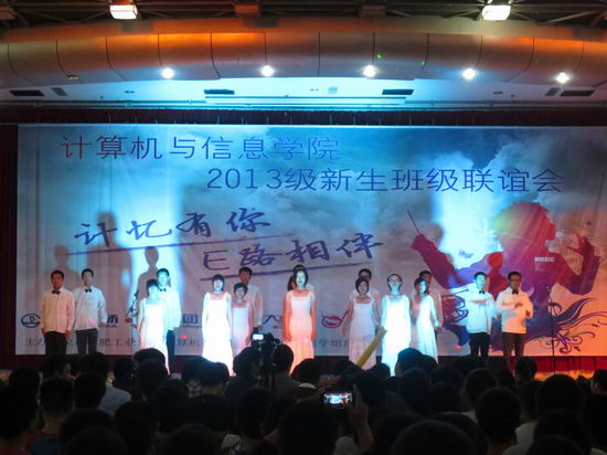 为迎接2013级新同学,增强学院凝聚力,2013年9月27日晚7点,“计忆有新,e路相伴”2013级新生班级联谊会在翡翠湖校区综合楼301隆重举行,学院全体辅导员出席了此次晚会。
