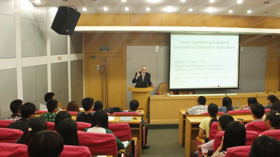 受我校医学工程学院和计算机学院老人福祉科技研究室的共同邀请,2013年10月13日晚上7点,美国哥伦比亚大学医学院Edward J. Ciaccio教授在我校屯溪路校区校学术会议中心二楼小报告厅为我校师生作了题为“Novel Transform, Spectral Estimator, and LMS Algorithm for Biomedical Applications”的学术报告。