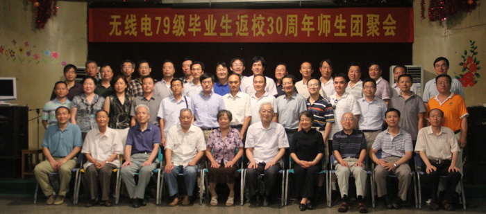 无线电专业79级的同学们。他们怀着对曾经留下自己青春足迹的母校深深眷恋之意;对昔日培育相伴他们四年的老师们无比尊敬之心;对久没相见的同窗思念之情;齐聚校园的斛兵塘畔,欢声笑语,说不尽的回忆,述不完的思念,表不尽的情谊;双双穿越三十年时空的手握在一起就放不下来……师生情,同学谊,热情至极的气氛,感人炽烈。