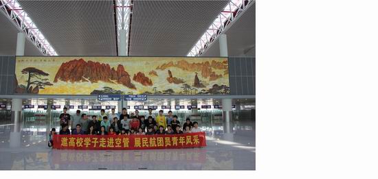 在合肥新桥机场,高级工程师卫志诚带领同学们参观了已经建设好的现代化高信息度的机场航站楼,接着分组登上21层高的机场控制塔,近距离给同学们介绍了计算机主控的机场电子控制设备。
