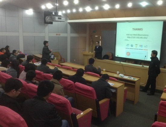 邀请,2013年3月26日上午,新加坡国立大学教授蔡达城在校学术会议中心报告厅做了题为“Live Social Observatory: A platform for social media research”的学术报告。报告会由蒋建国书记主持,杨学志副院长、信号所与软件所教师以及学院研究生、本科生参加了报告会。