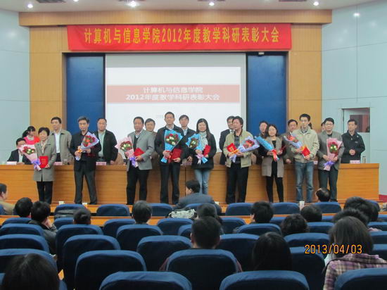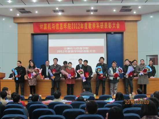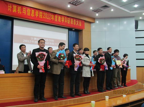 大会对2012年度学生评教中排序前二十名的个人授予了“2012年度学生评教个人优秀奖”;对2012年度科研项目纵向到账经费50万以上、横向到账经费100万以上的个人授予了“2012年度承担科研项目个人优秀奖”。会上,吴玉程副校长发表了讲话,向受到表彰的31位教师表示祝贺,对学院2012年度工作给予了高度的评价,并勉励大家科研再上台阶,早日将p站