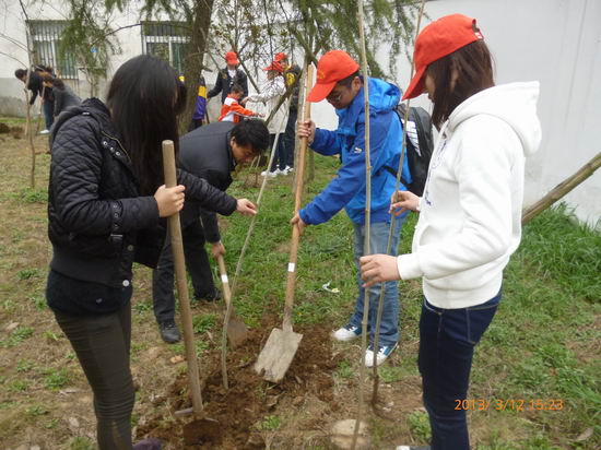 捐助结束后,先锋社的志愿者们与梁敦回族小学的师生们共同植下30棵树苗,本次活动受到了安徽公共频道的全程采访。
