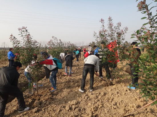 本次活动由校内问卷调查和校外植树两部分组成,在学院的大力支持与密切关注下,全班同学共同前往合肥市肥西县小庙镇,在其团委和村委的带领下积极开展植树活动。植树现场,不论男女,从搬树到种树,从虚心请教到亲身实践,同学们都饱含热情,挥舞铁锹,乐在其中。看着吐露新绿的树苗一颗颗挺立,在汗水挥洒的土地上,同学们脸上洋溢着幸福的微笑,也充分感受到了劳动带来的充实感。