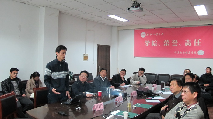2012年12月16日晚7:30,学院在科技楼五楼会议室举行了人才培养C计划(国家杰出青年基金培育计划)年度报告会。报告会邀请了韩江洪教授、何怡刚教授、刘永胜教授、徐进章教授、高隽教授担任评委,来自通信与信息处理研究所、网络与信息安全研究所的青年教师参加了报告会。报告会由院长刘晓平教授主持。
