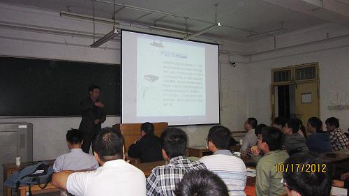 安徽省中新软件公司研发项目经理孟彦就该公司的发展前景,金盾系列网络安全产品向大家做了具体介绍,该公司是目前合肥唯一一家从事网络安全产品研发的公司,在解决国内抗拒绝服务攻击技术层面至今一直处于领先地位。随后孟经理围绕项目实训实践主题,对公司的几个课题方向进行了详细阐述,孟经理的介绍引起了学生的浓厚兴趣,学生纷纷提问进行交流互动。