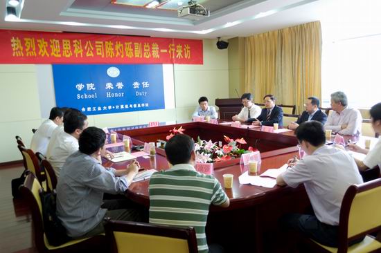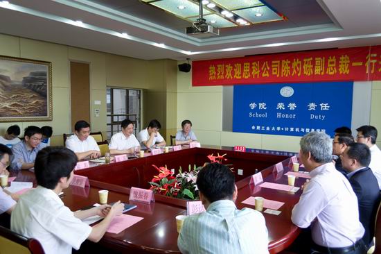 参观结束后,双方进行了会谈,同时出席会议的还有工大高科董事长魏臻教授、技术总监陆阳教授,我校信息与网络中心主任邓林教授等。会谈中,韩江洪副校长介绍了工大的科研情况;陈灼砾副总裁介绍了思科公司近来的发展、主要业务和产品,同时强调思科公司一直关注高校教育,希望与高校加强合作;工大高科魏臻董事长介绍了工大高科公司与思科公司在矿山信息化方面成功合作的案例。各方就进一步深入合作达成共识,将依托思科公司在网络通讯领域全球领先的技术优势和解决方案,合肥工大高科信息科技股份有限公司在矿井安全监控、工业铁路智能运输安全调度方面的行业领先地位和创新能力,p站