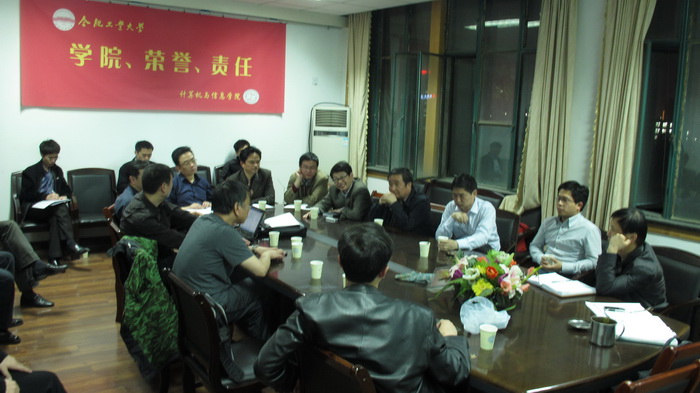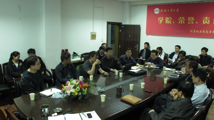 2012年4月16日晚19:30-21:00于学院会议室举行全体教授会议,围绕2011计划及要求,研讨学院未来发展规划,李廉教授、韩江洪教授、蒋建国教授、王浩教授等出席会议,刘晓平教授主持会议,会议听取了相关工作发展计划,对计算机、电子、通信、物联网等方向的集成创新进行了认真讨论,李廉教授最后分析了学校的科研发展态势,要求大家敢于直面自己的不足,敢于打破坛坛罐罐,凝炼核心技术,掌握科研杀手锏,为未来的五年乃至更长的学科发展做好准备。情感计算重点实验室、973项目基地、安全关键工程中心等相关人员出席会议。p站