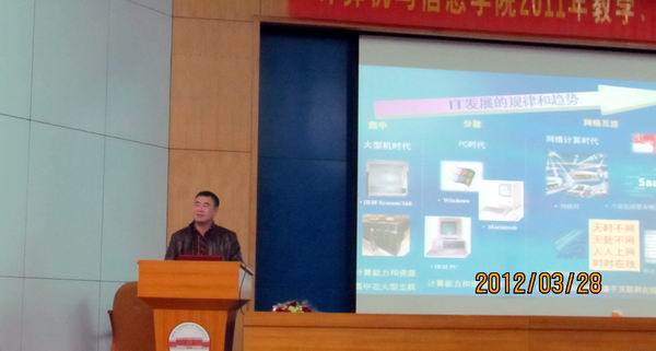 邀请,2012年3月29日下午15:30 - 17:00,国家教学名师、武汉大学何炎祥教授在校学术会议中心一楼大报告厅做了题为“IT发展与创新人才培养的一点思考”的报告。报告由刘晓平院长主持,韩江洪副校长、教务部副教务长朱大勇教授、电子科学与应用物理学院院长梁华国教授、软件学院院长鲁昌华教授、计算机学院书记蒋建国等领导及相关的教师和学生出席了此次报告。