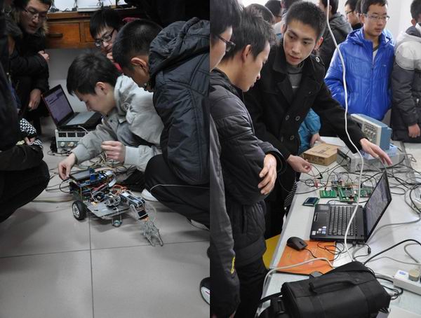 的大力支持,吸引了来自实验教改班、电气工程与自动化学院、计算机学院的200多名学生参观,所有参与该次活动的人员名单将在电子信息创新基地网站上公布。本次活动是作为12月7日电子新创新基地动员大会的后续活动,在动员大会上基地成员把要展示的作品的原理已经给同学们做过介绍,因此来参加开放日活动同学们都是带着问题、带着兴趣来的,这样才能做到有的放矢。