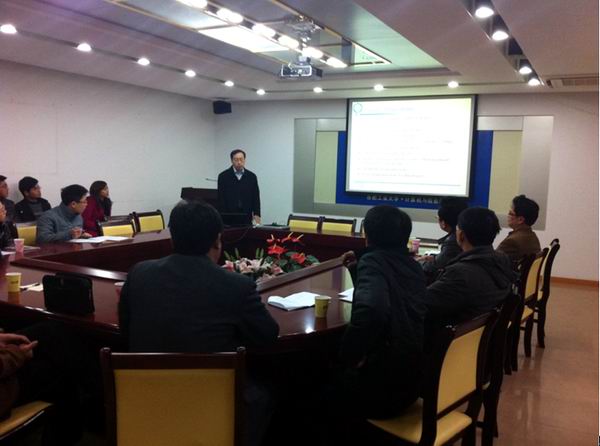 凌翔博士首先对“通信抗干扰技术国家重点实验室” 以及该实验室下属的“通信信号处理与实现研究室”的人员、科研工作和部分研究方向与研究成果进行了介绍,然后就“多核并行基带信号处理”和“认知无线电中的功率分配问题”两个主题,进行了更为深入的阐述。凌翔博士报告结束后,丁志中、孙锐、孙克文、开彩红、孙永宣等老师以及部分参会学生就报告中的相关问题进行了交流和讨论。通信系丁志中主任在报告会上也向凌翔博士介绍了我校、p站