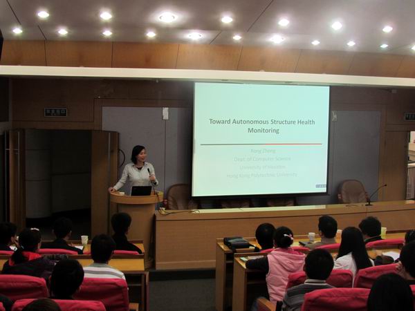邀请,2011年11月5日下午,休斯顿大学郑榕教授在校学术活动中心二楼小报告厅作了题为“Toward Autonomous Structure Health Monitoring”的报告。报告由学院院长刘晓平教授主持,p站