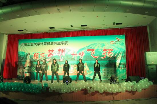 本次迎新晚会在激情四射的开场舞蹈下正式开始,晚会在互动节目的连接下分为上下两段,每段的节目都吸引着同学们的眼球,不仅仅有手语合唱《仰望星空》的视觉盛宴,也有音乐合奏《七月夜》的听觉享受。上半场的校园情景剧《刘同学的囧事》将大学新生的方方面面展现的淋漓尽致,将全场观众带到第一次高潮,互动游戏中,各级辅导员的加入让现场观众热情高涨,下半场中,军体格斗操《魂斗罗》的阳刚,花式篮球的千变万化更是将现场观众的眼球深深吸引,仿综艺节目《非雷勿扰》更是以其独特风格掀起现场的高潮。之后11级辅导员陈方鑫老师的个人倾情献唱更是引爆全场。最终此次晚会在大合唱《年轻的战场》的豪迈气氛中落下帷幕。