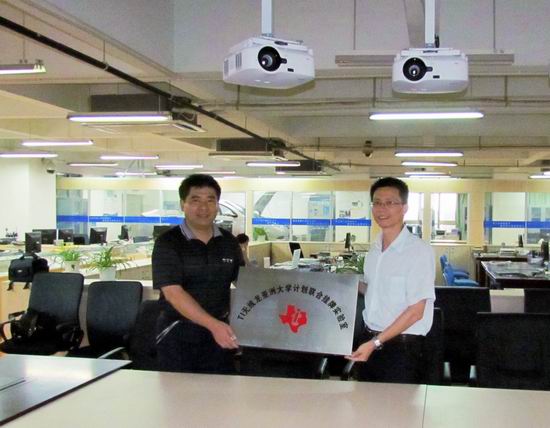 与无锡无线龙的萧总经理一同签署了共建教学实训基地协议,并为“TI无线龙亚洲大学计划联合挂牌实验室”和“无线龙校外实训基地”揭牌。签字仪式后,刘晓平院长视察了无锡无线龙的无线传感网教学装备,并表示学院重视对计算机专业学生实践能力的培养,希望打造校内教学与公司实训两位一体的实践培养模式。