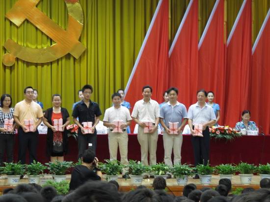 党委获得“先进基层党组织”称号;副书记、副院长何庆领同志获得“优秀党务工作者”称号;信号与信息处理研究所党支部获得“红旗党支部”称号;09级研究生张靖同学、信号与信息处理研究所徐小红老师获得“先进党员”称号; 09级辅导员张金伟老师获得“优秀德育工作者”称号;信号与信息研究所党支部和信息安全08-1班党支部获得“特色党支部立项活动三等奖” ,覆盖了此次表彰全部奖项。蒋建国书记代表“先进基层党组织”单位作了发言,介绍了p站