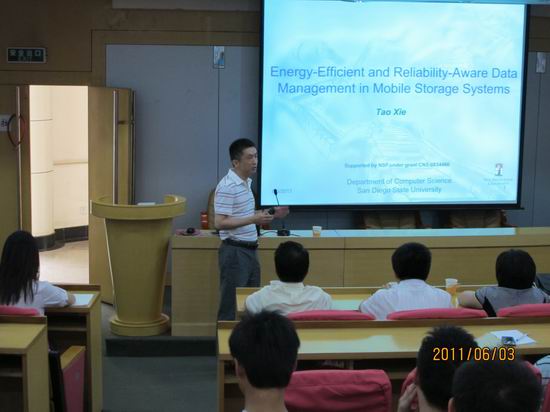 师生做了题目为“Energy-Efficient and Reliability-Aware Data Management in Mobile Storage Systems”的学术报告。