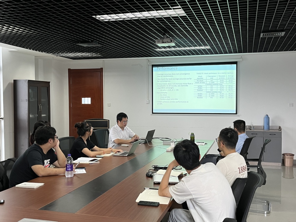师生做了题为“Jamming Attacks on Decentralized Federated Learning in Multi-Hop Wireless Networks”的学术报告,学院相关研究方向的老师和学生参加了报告会。