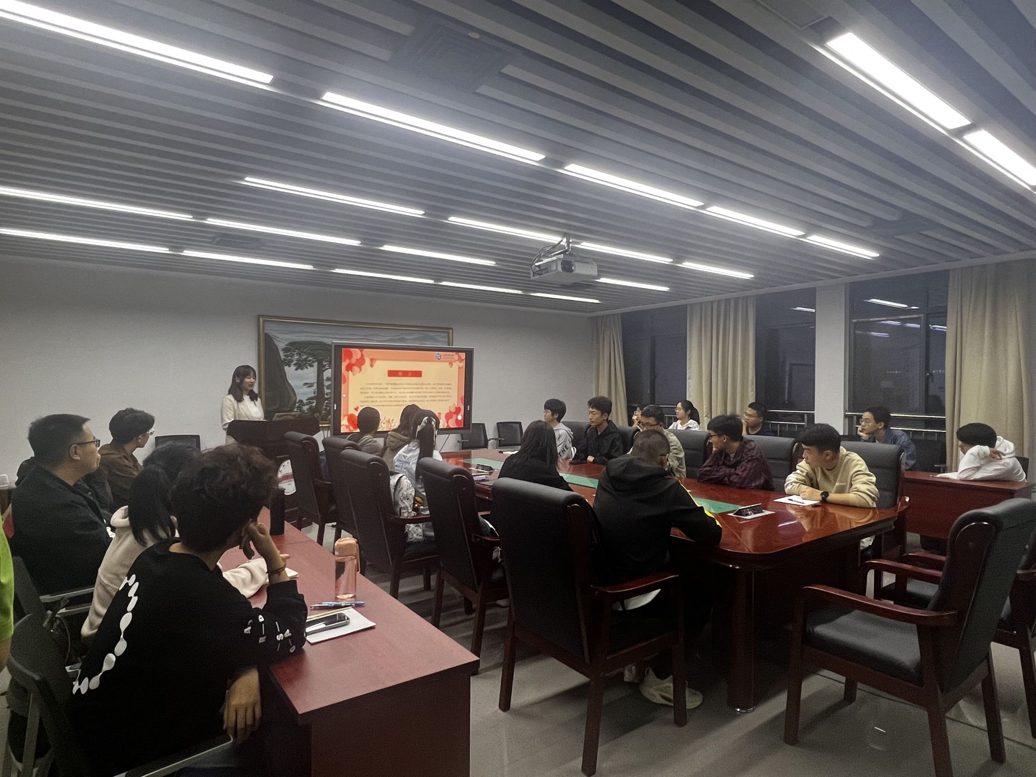 在科教楼A座1104会议室召开2023级学生骨干心理主题班会的组织与策划培训,2023级辅导员主持会议,学院2023级各班心理委员、团支书参加会议。