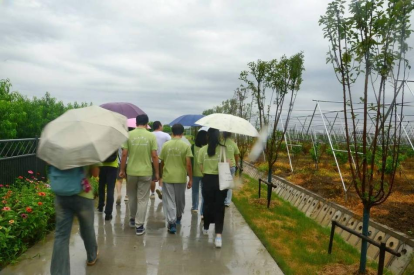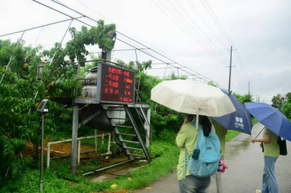 团队随后在负责人的带领下来到桃园参观,负责人又补充了其他一些未解决的问题。惠山区的桃树是露天种植,若遇上雨天,未成熟果实吸水导致过重,就会出现落果现象。水蜜桃上市期间又恰逢梅雨季,造成了经济损失。