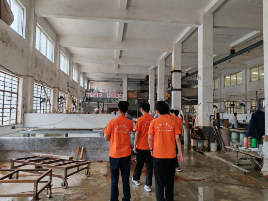 图为团队成员参观宣纸造纸工厂陈倩倩摄