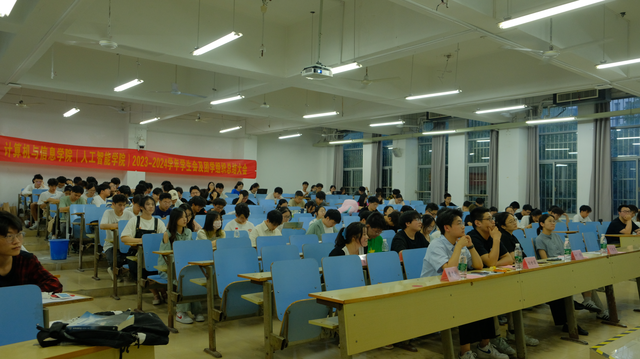 于翠三教302举办“计联万物,信创未来”学生会及团学组织总结大会。学院团委副书记叶璟、2023级刘世国、丁宏霈、学生会秘书长曹文钊,学生会和团学组织全体成员参与活动。