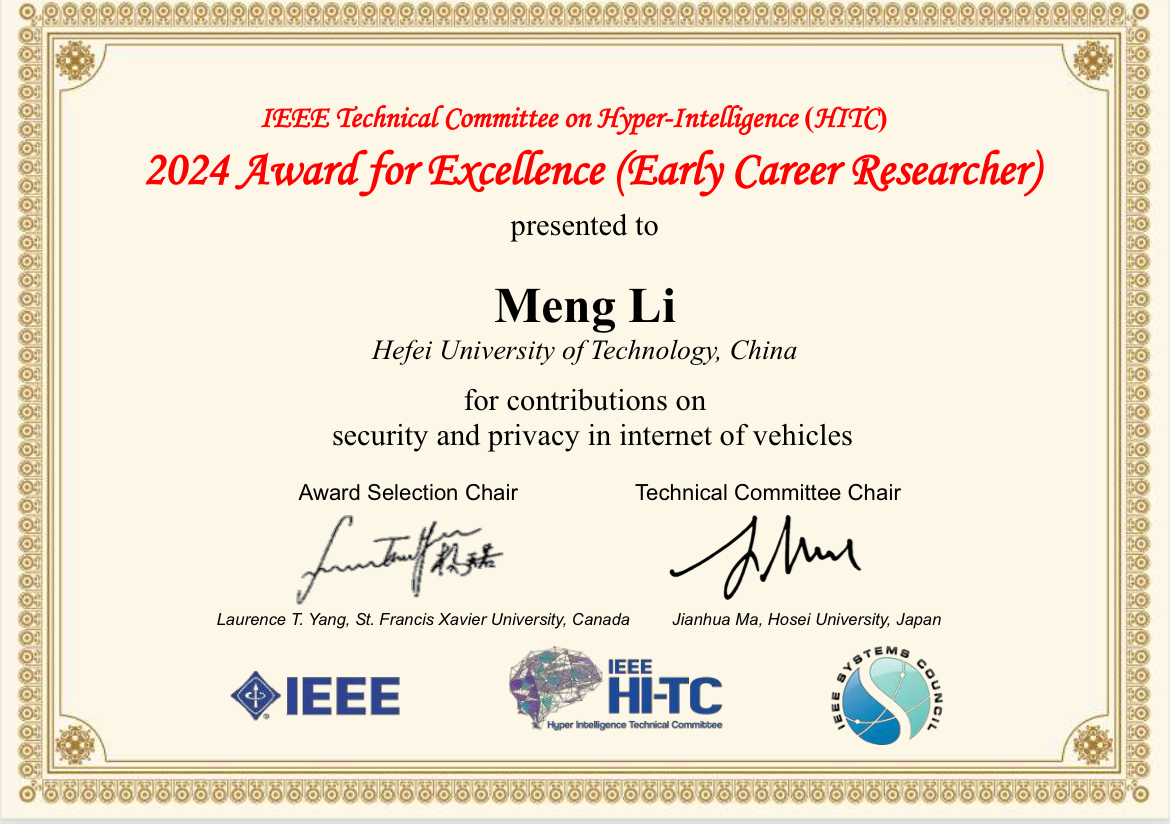 该奖由IEEE HITC于2022年设立,专门表彰获得博士学位后五年内在学术上做出突出贡献并具有长远发展潜力的青年学者。每届提名人数众多,竞争异常激烈。专委会最终从全球遴选出5-6名在职业生涯早期做出了突出贡献的计算机领域青年科学家。李萌副研究员因在车联网安全和隐私领域做出的突出研究工作而获奖。此次获奖,既是国际同行对他研究成果水平和学术贡献的肯定,同时也是对p站