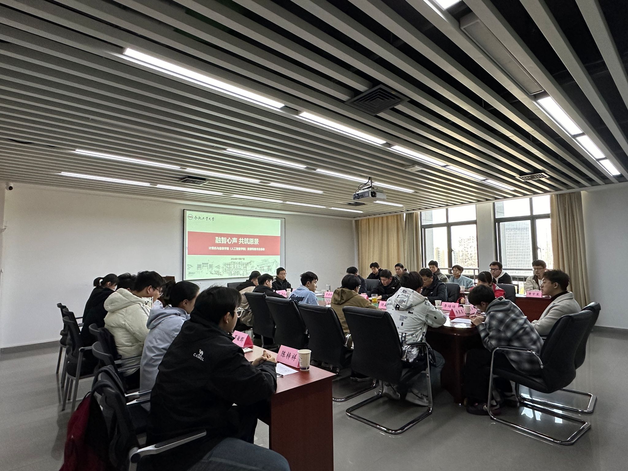 (人工智能学院)在翡翠湖科教楼A座1104会议室开展师生见面日活动,学院院长洪日昌,副书记张海林,信息与通信工程系主任齐美彬,计算机科学与技术系主任李培培,以及本科生学生代表和辅导员参加了本次活动。