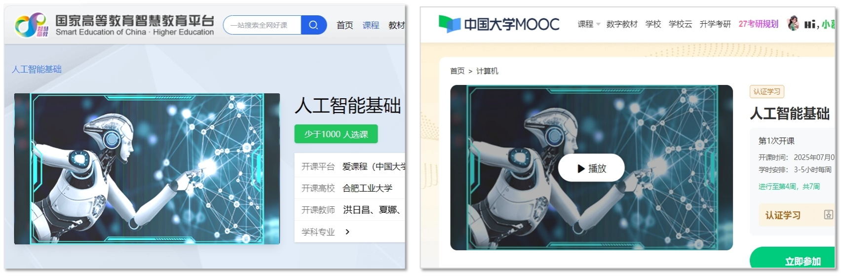 重点打造的人工智能通识课“人工智能基础”上线国家智慧教育平台,此前,该课程已先后上线学银在线平台、中国大学MOOC平台,选课人数已达2800余人,累计访问量已超1400万次。