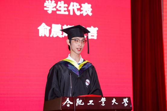 Graduate representative Yu Chenhui reviewed his experience of studying at the University of Science and Technology, and shared his youthful story of bravely pursuing dreams under the influence of the school motto "Virtue, Diligence, Truth-seeking, Innovation" and benefiting from the second classroom transcript system. On behalf of the graduates, he promised the alma mater to remember the school motto, pursue excellence; love the school and honor the school, cultivate feelings, dedicate responsibility, and strive for innovation.