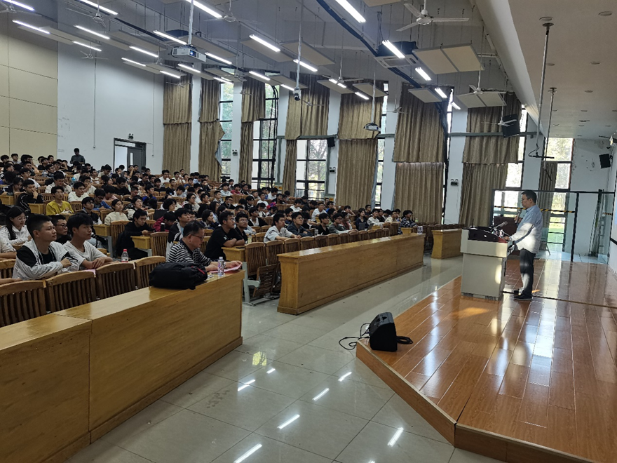 To strengthen industry-academia collaboration and help undergraduate students, especially freshmen, better understand cutting-edge developments in artificial intelligence (AI), the Department of Intelligent Science and Technology invited Dr. Shijin Wang, Executive Dean of iFlytek Research Institute and Deputy Director of the National Key Laboratory of Cognitive Intelligence, to deliver an academic lecture. The event took place on October 11, 2024, at Room 341, Xin'an Building, Xuancheng Campus of Hefei University of Technology. The session was chaired by Professor Yiming Ouyang, Head of the Department of Computer Science and Information Engineering at Xuancheng Campus. Over 350 undergraduate students and several faculty members attended the lecture to hear Dr. Wang's insightful presentation.