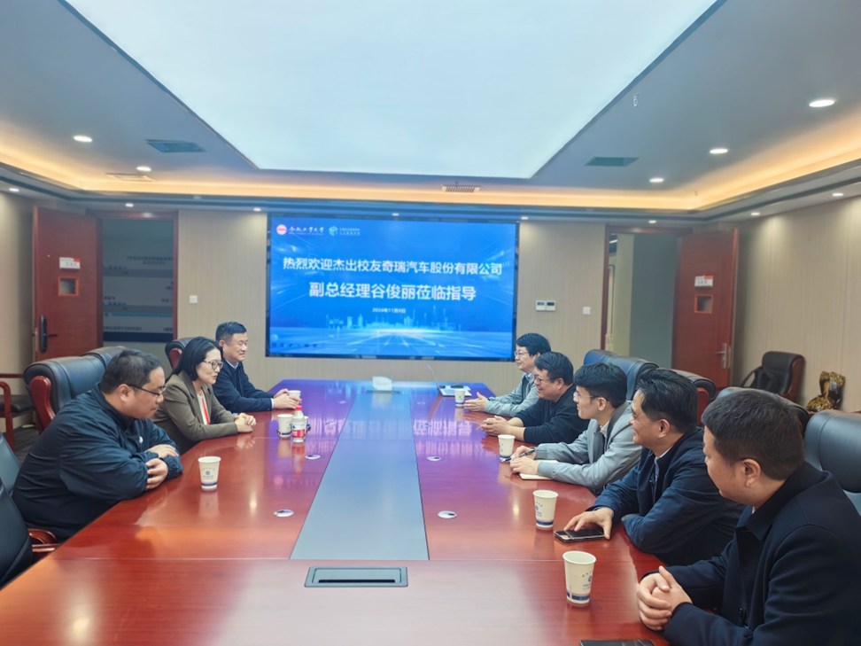 On November 9, the school invited distinguished alumna Gu Junli, Vice General Manager of Chery Automobile Co., Ltd., for a discussion and exchange session. Attendees included Nian Yongqi, Party Secretary of the school, Vice Dean Xia Na, Vice Dean Wu Gongqing, and teacher representatives.