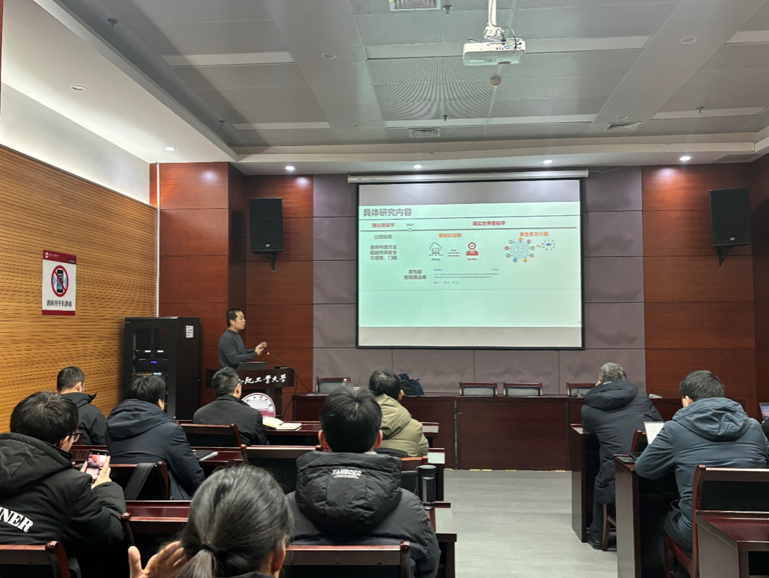 On December 20, 2024, Professor Chen Yu from the School of Cybersecurity, Shandong University, was invited by the School of Computer Science and Information Engineering to deliver an academic lecture titled “Construction and Implementation of a Unified Framework for Privacy Set Operations.” The event was held in the 5th Conference Room on the first floor of the Feicui Science and Education Building A. The lecture was hosted by Vice Dean Wang Hui, with attendance from the school 's Party Secretary, Nian Yongqi, relevant faculty members, and students.